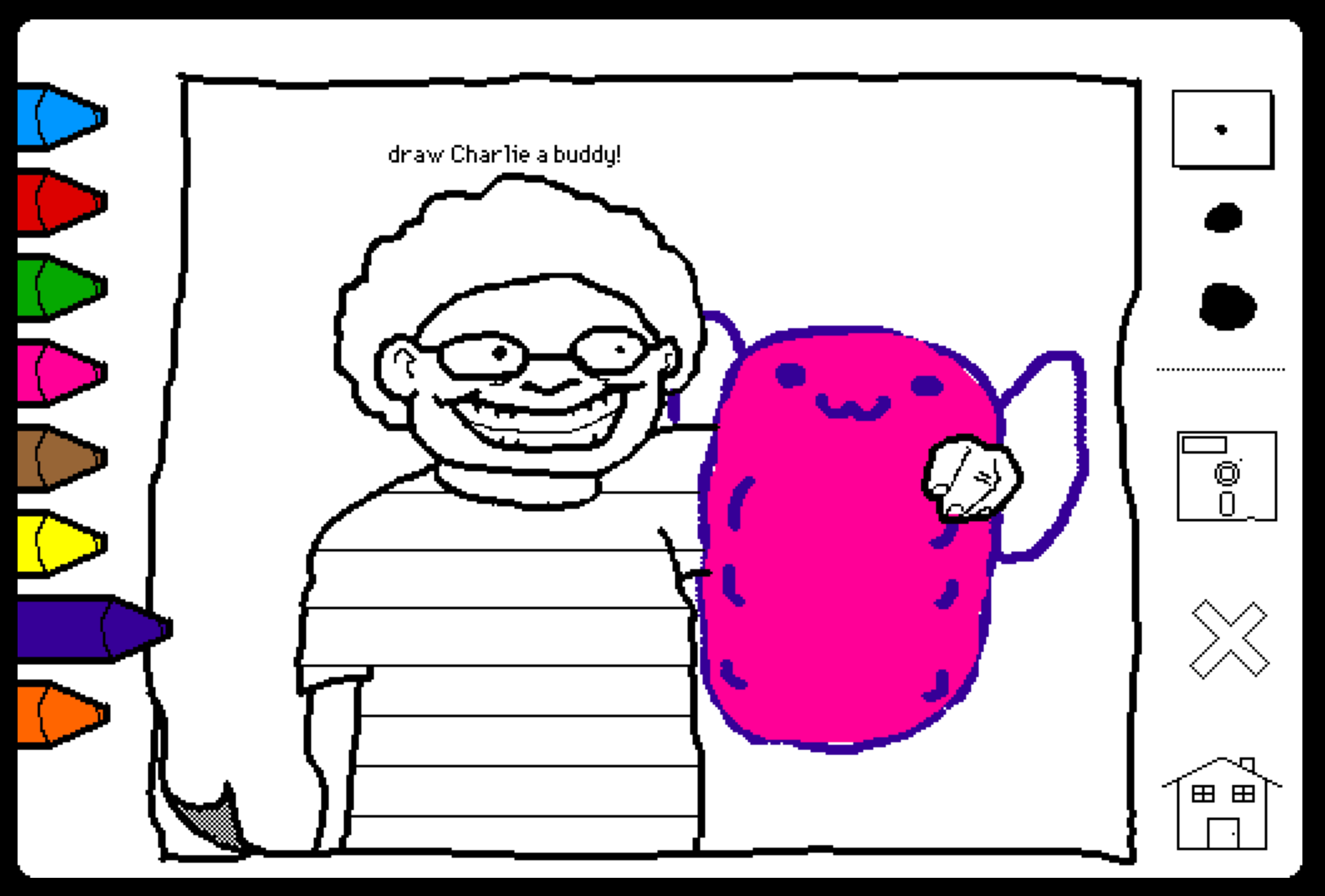 For years, fans have clamored for a way to experience the pleasures of Charlie's Playhouse on modern computers. Through the use of advanced technology and cunning extrapolation I have created a compelling simulacrum with many of the thrills, qualities, and activities of the original, including: